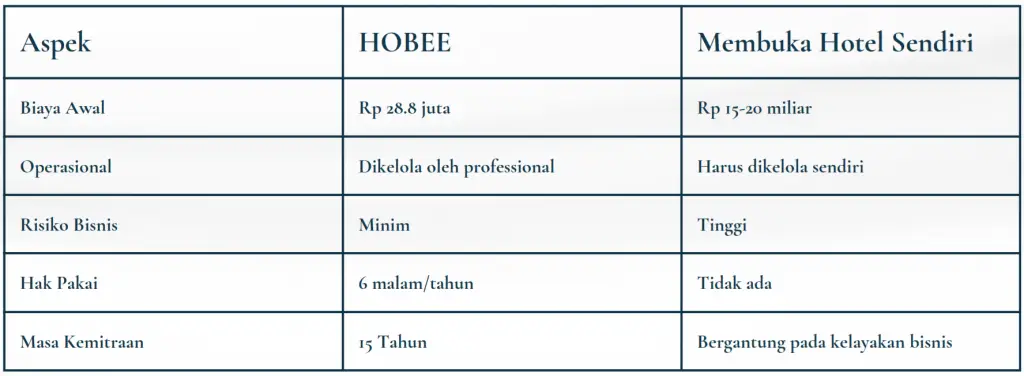 Operasional hotel dikelola oleh tim ahli tanpa melibatkan mitra secara langsung.